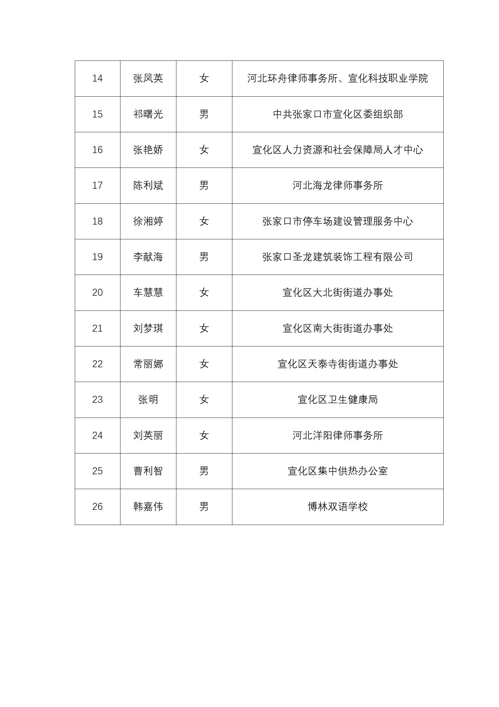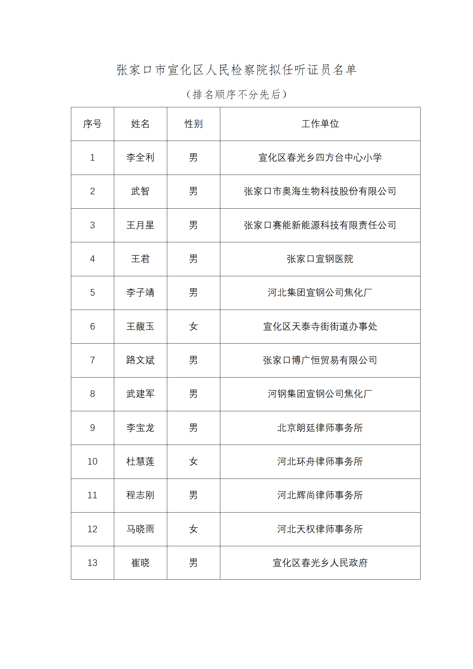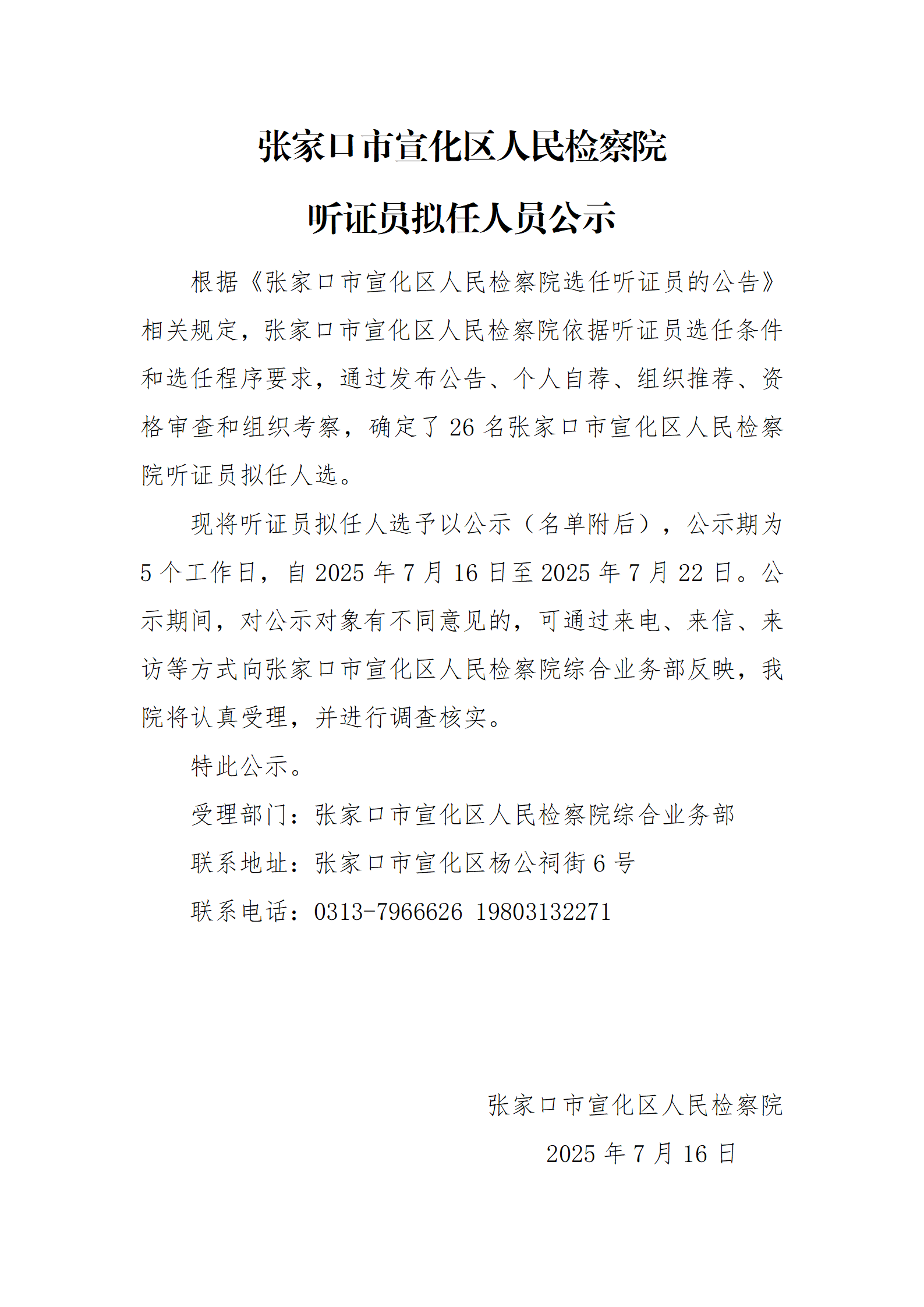 张家口市宣化区人民检察院2025年听证员拟任人员公示